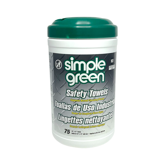 Heavy-duty, multi-purpose wipes saturated with Crystal Simple Green for powerful cleaning and degreasing. The dual-sided towels feature a scouring side for scrubbing, and a smooth side for shining. NSF registered for use in food processing facilities.