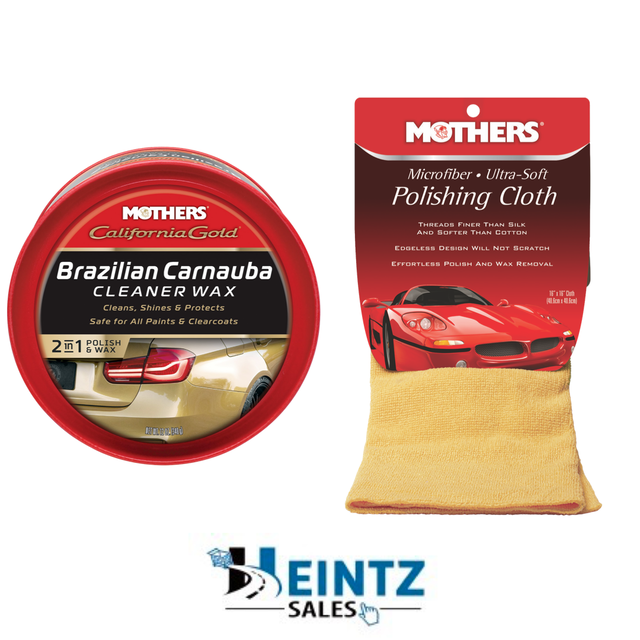 One 12 oz container of Mothers California Gold Brazilian Carnauba Cleaner Wax paste + Mothers Ultra-Soft Microfiber Polishing Cloth