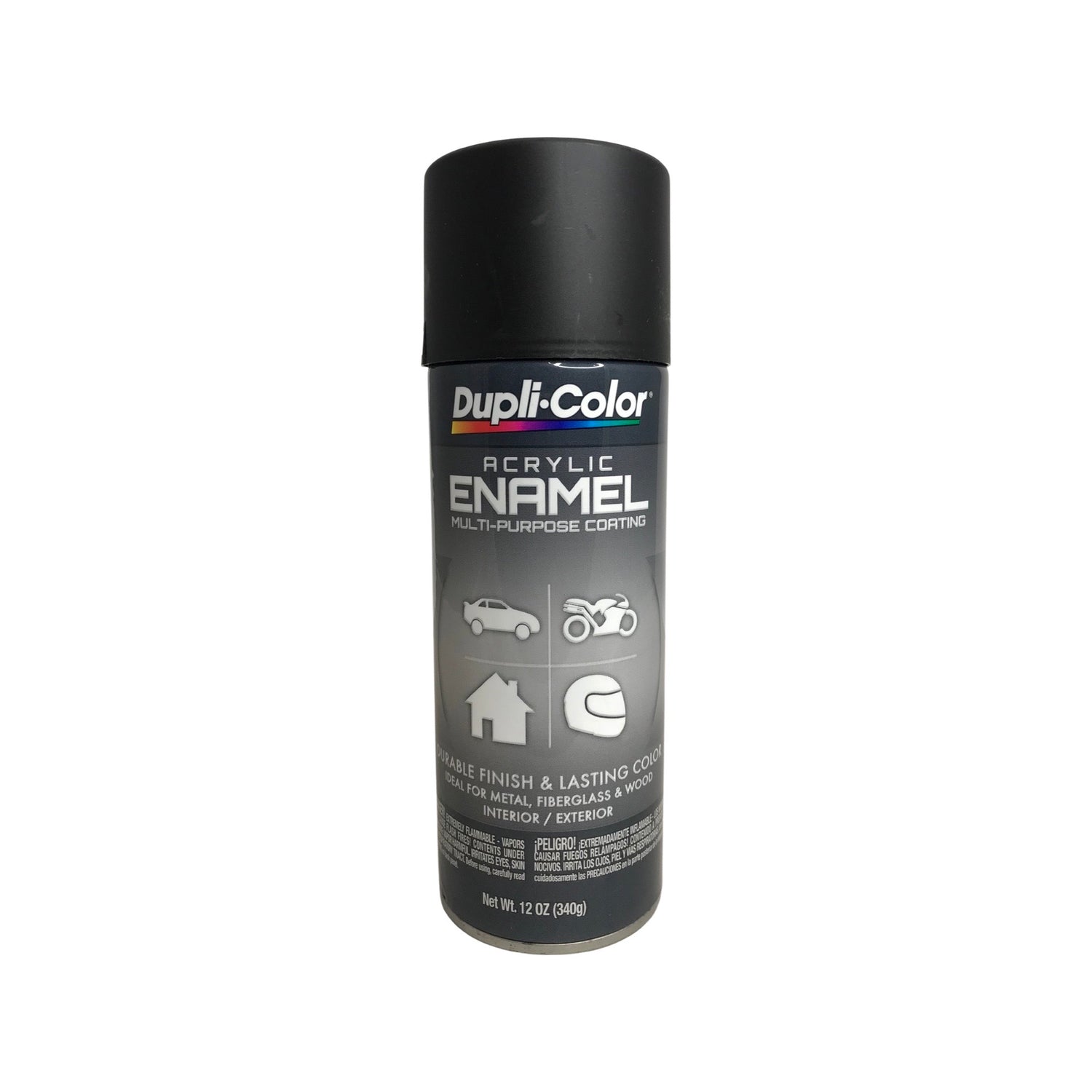 One 12 oz. aerosol can of Dupli-Color DA1605 General Purpose Acrylic Enamel Coating Flat Black Paint.