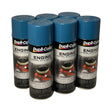 Six 12 oz. cans of Duplicolor DE1608 GM Blue Engine Enamel Paint with ceramic.