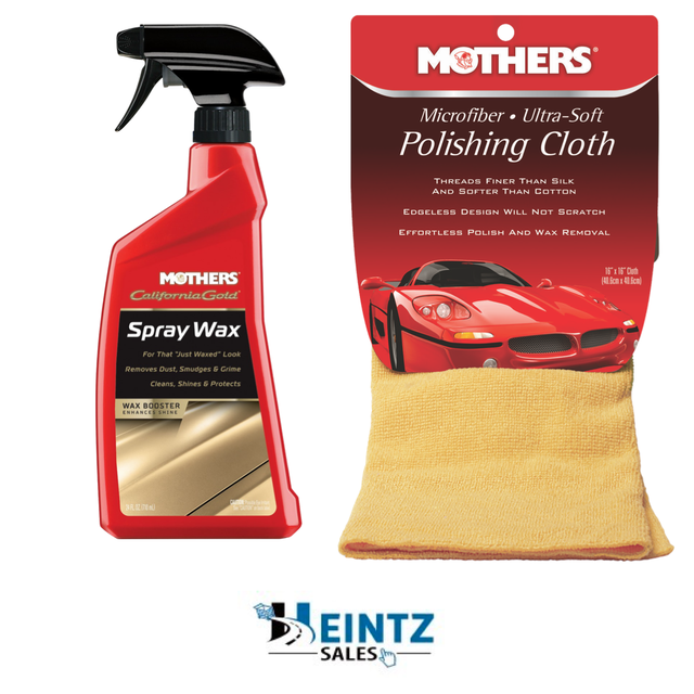 24 oz bottle of Mothers California Gold Spray Wax with Ultra-Soft Microfiber Polishing Cloth