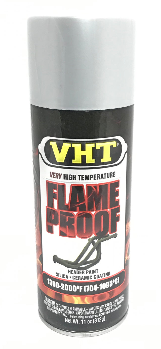 This is an 11 oz Aerosol can on VHT FLAT SILVER Flame Proof Header Paint.