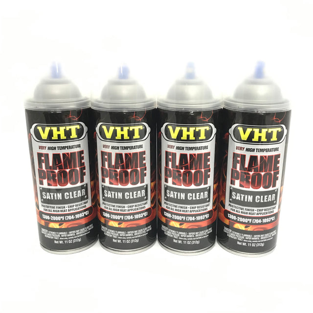 This is a 4 PACK of 11 oz Aerosol can on VHT SATIN CLEAR Flame Proof Header Paint.