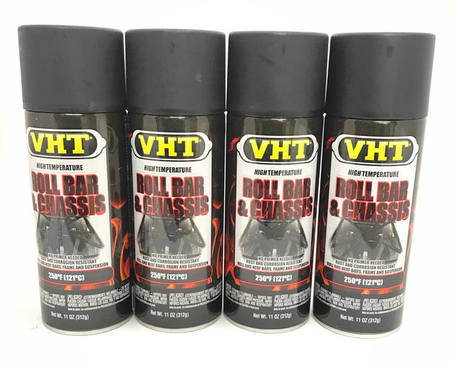 This is a 4 PACK of 11oz Aerosol spray can of VHT High Temperature SATIN BLACK Roll Bar and Chassis Paint.